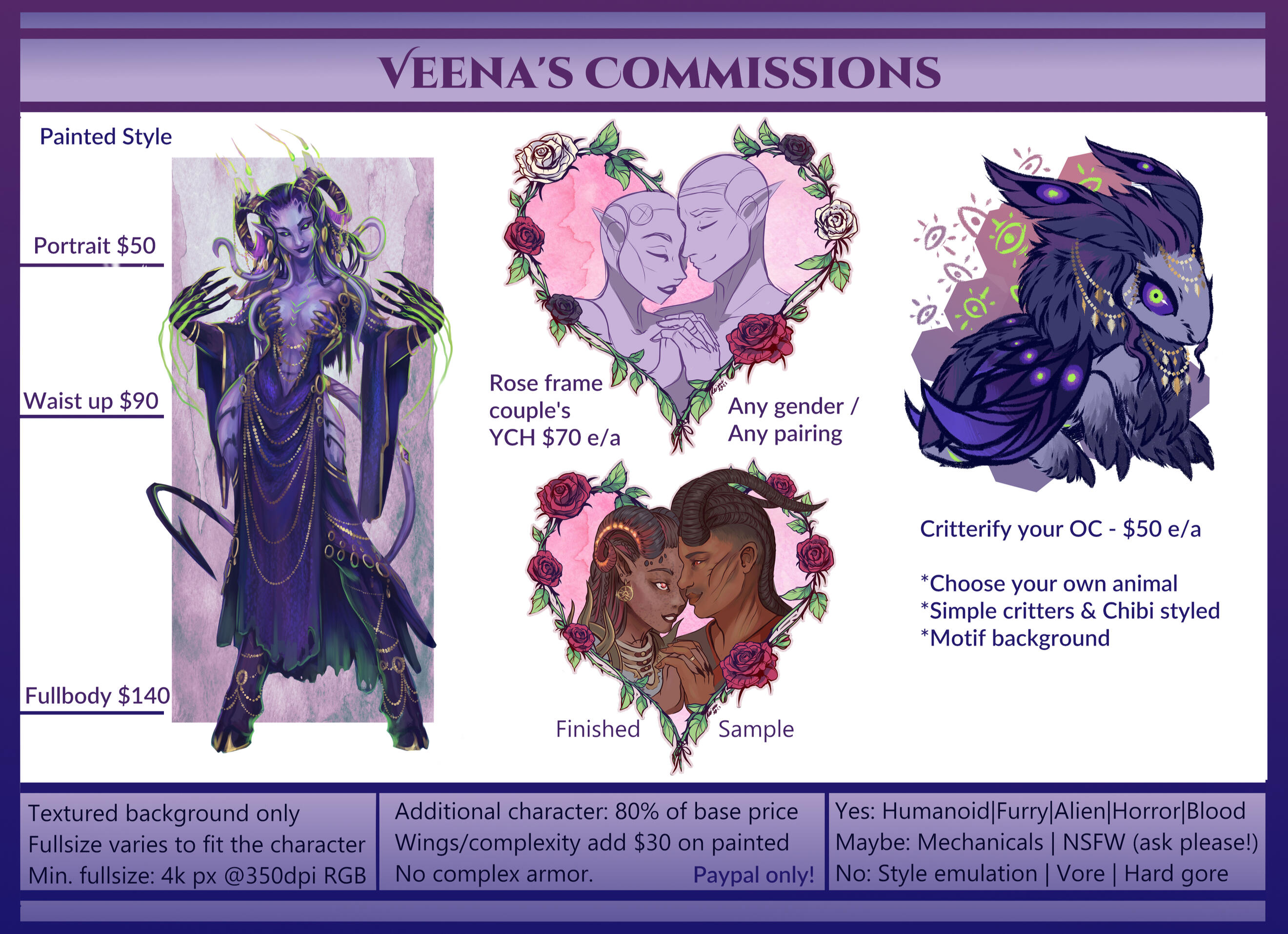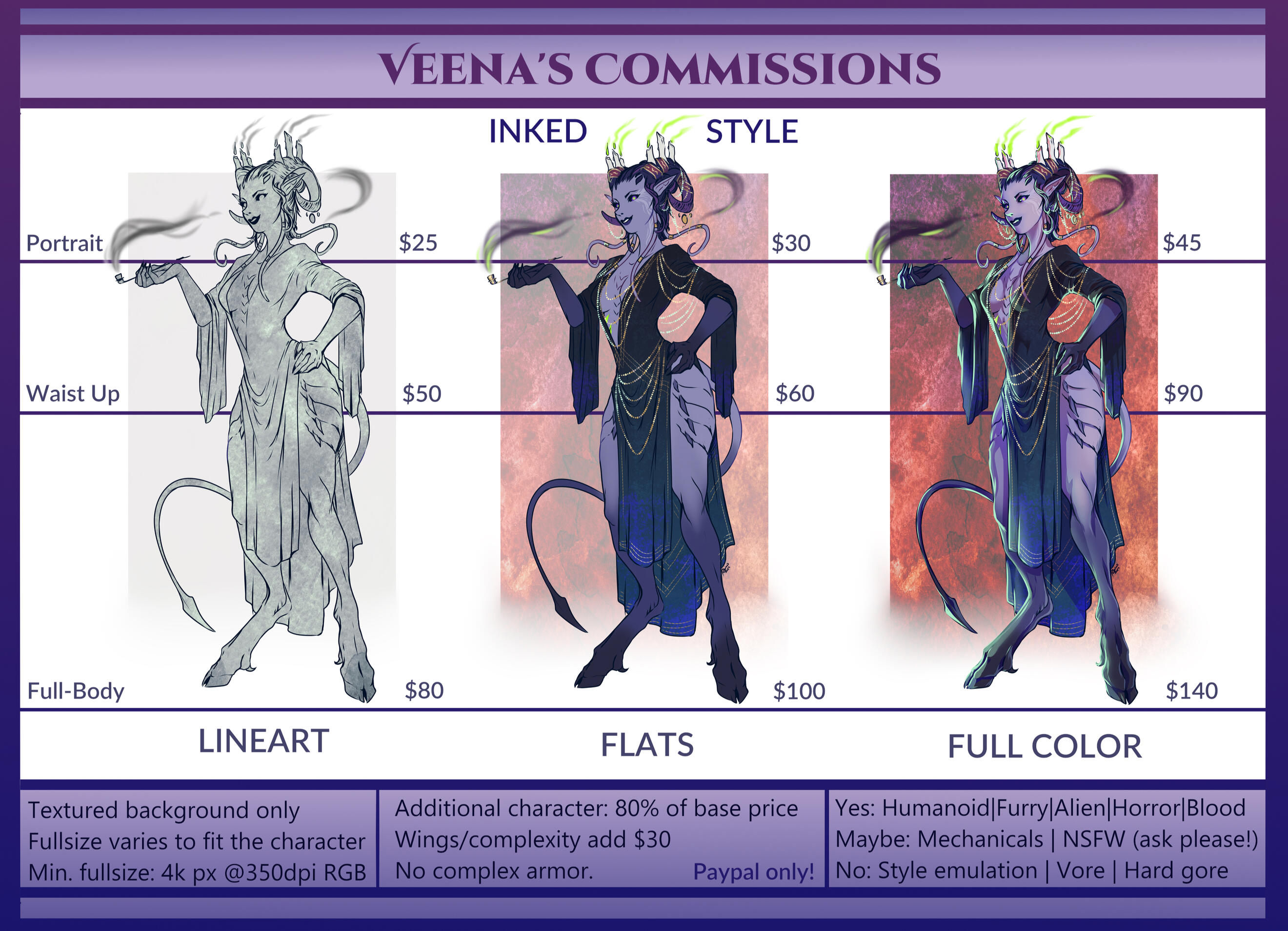Before placing an order, please read the terms below as this will inform you of how I regularly work. By placing an order I assume you've read and agreed to the terms listed below.You must be +18 to commission me.All commissioned work is for personal use only. Under no circumstances you may use my work for Gen AI / NFTs.By commissioning me, you understand that:- You're getting a custom drawing of your character, in digital format (PNG & JPG), sent to you via a cloud storage hotlink to your DMs- Commission pieces are artistic interpretations and thus never 1:1 with the references. I will not do style emulation.- Commissions usually have an ETA of 7-20 business days depending on the order's complexity and current queue.- All prices listed are in US dollars and I take payments only via invoicing.- All commissions must be paid upfront.- WIPs are sent in Sketch phase. You may do major revisions only in the sketch phase and minor revisions once the piece is finished.- Partial refunds are issued if the commission is cancelled beyond the sketch phase and are proportional to the work done. Full refunds are issued if no work was done at all.- No refunds once the work is done.- I hold the copyright/authorship of the commissioned work, while the copyright to the character(s) will remain with their respective rights holder.- I reserve the right to deny any order, stop work on a commission or cancel a commission request due to poor communication, rude/inappropriate behaviour, or a breach of these Terms. In this case, a full refund will be issued and the unfinished work repurposed.
